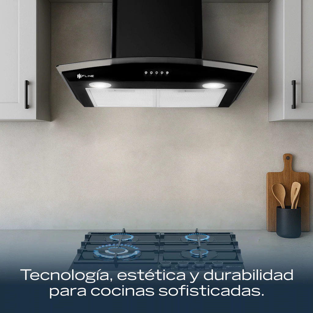 Renueva tu cocina con nuestro combo de parrilla y campana de acero negro FLINE. La combinación perfecta para combinar con el diseño elegante y sofisticado de tu cocina.